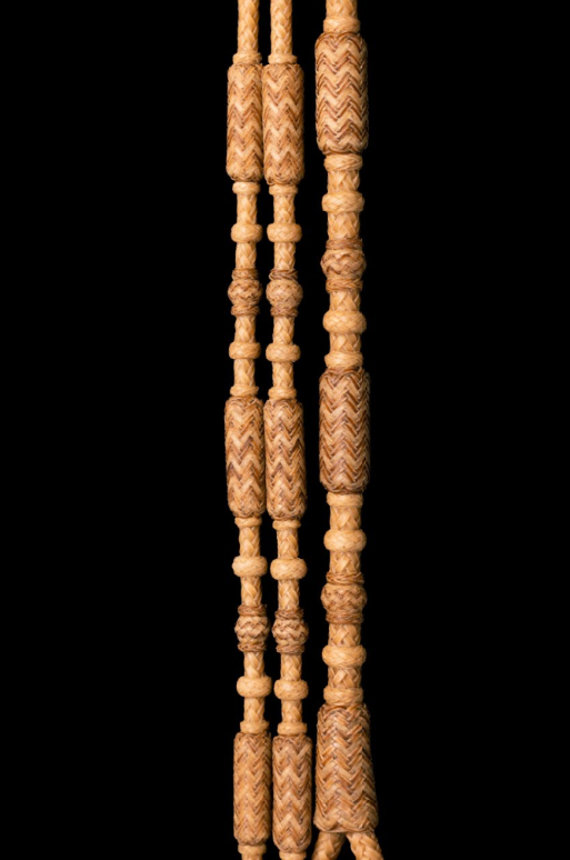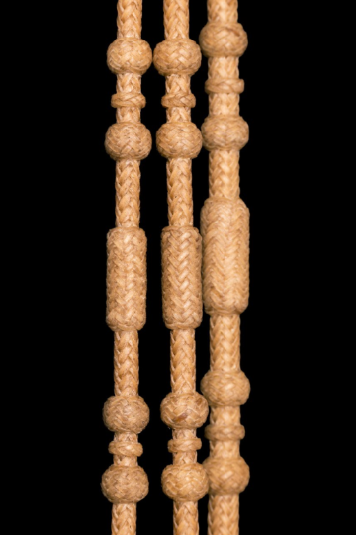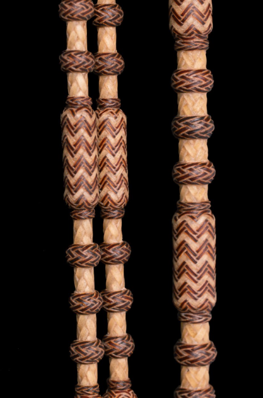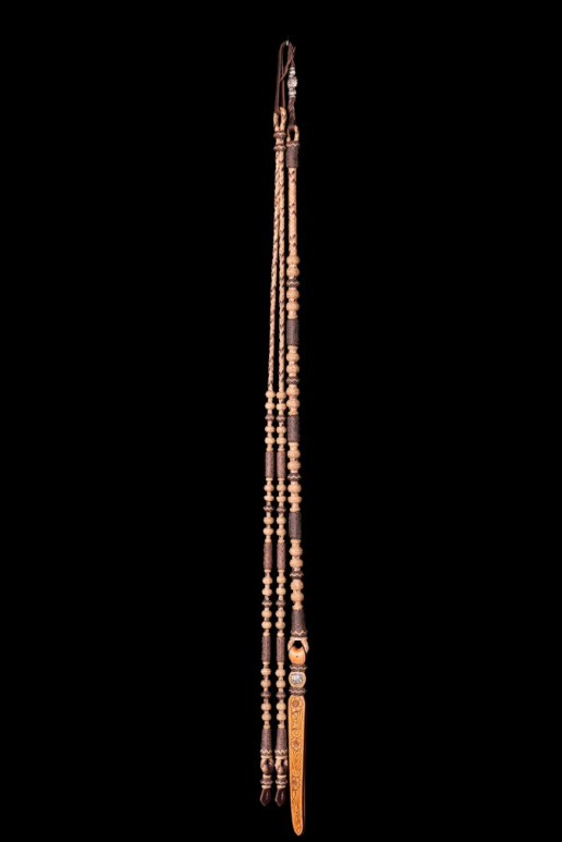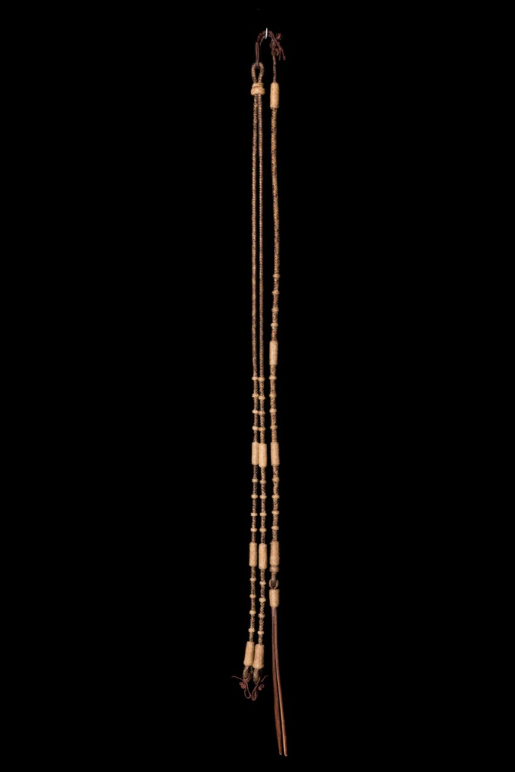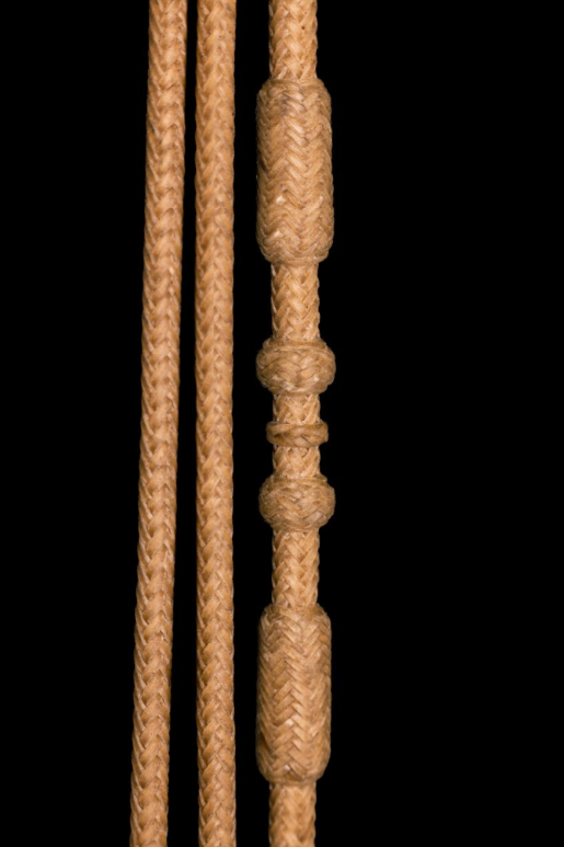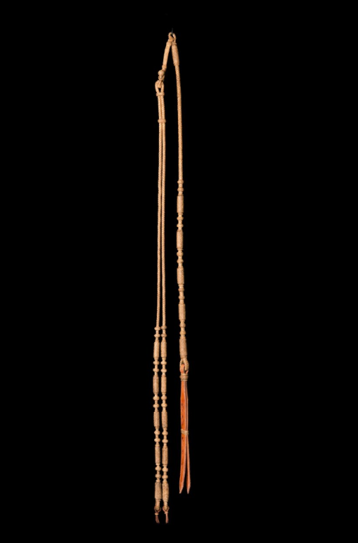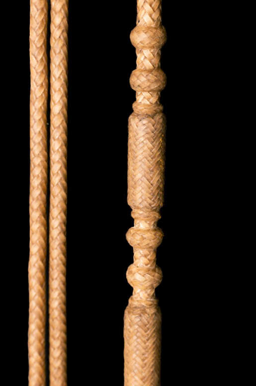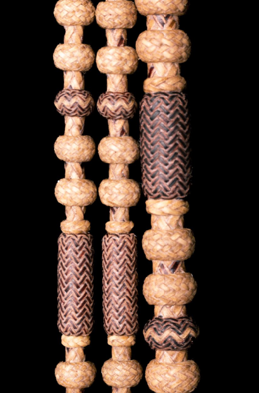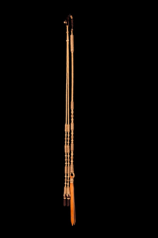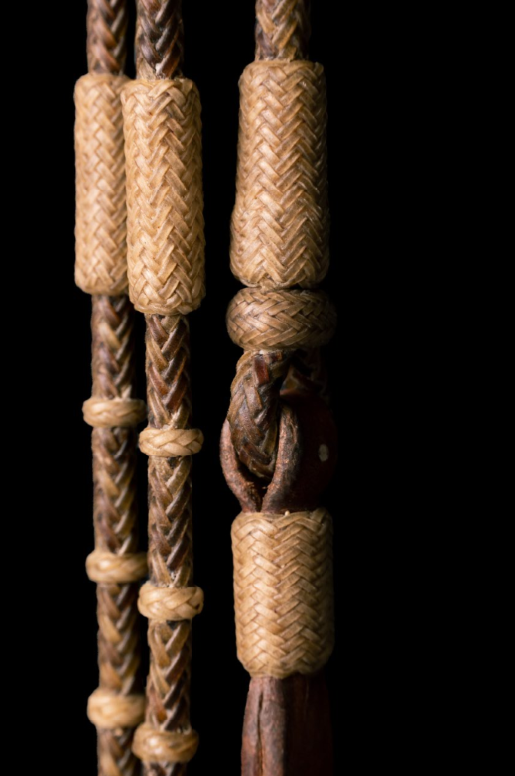 To preserve both the durability and functionality of the reins, I chose not to use ultra-fine button string. Instead, I worked with heavier string, which offers better abrasion resistance during real use. Dyed rawhide in two different shades was used for the decorative knots featured in the pattern.