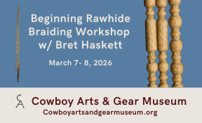 A 2 day Beginning Rawhide Braiding Workshop with Master Braider Bret Haskett at the Cowboy Arts & Gear Museum.
